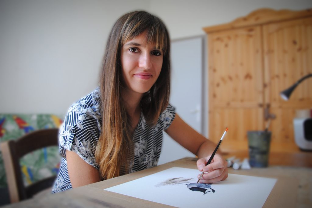 Née à Dijon en 1990, Marion Velten apprend à maîtriser les techniques picturales à l’école de dessin et d’illustration Emile Cohl de Lyon. Jeune diplômée, elle se spécialise aussitôt dans la peinture animalière. Les œuvres de Carl Brendens et Robert Bateman la touchent et elle devient adepte de l’hyperréalisme. Sur le terrain, proche ou lointain, elle cherche la rencontre avec l’animal dont elle capte, à travers un croquis effectué sur le vif ou un cliché sublimé par un éclairage propice, la puissance d’un regard, la dignité d’une attitude. De la fugacité de l’instant naît une véritable empathie qui donnera sa force au tableau composé ensuite dans l’atelier. Ses observations détaillées se traduisent dans le soin et la précision d’un pelage longuement retravaillé. Peu à peu la passion s’installe…
